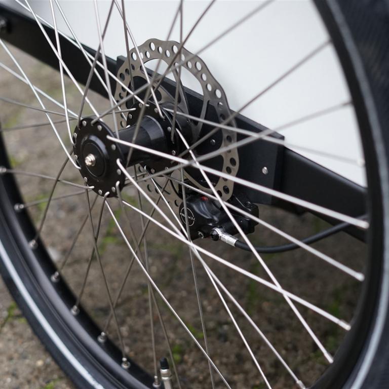 Kraftvoll zupackende Scheibenbremse am Hinterrad.